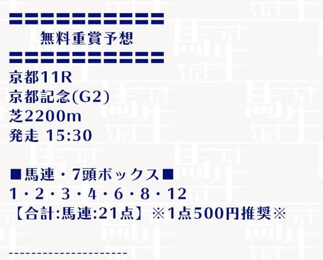 - 無料予想は3連複BOXで参加!