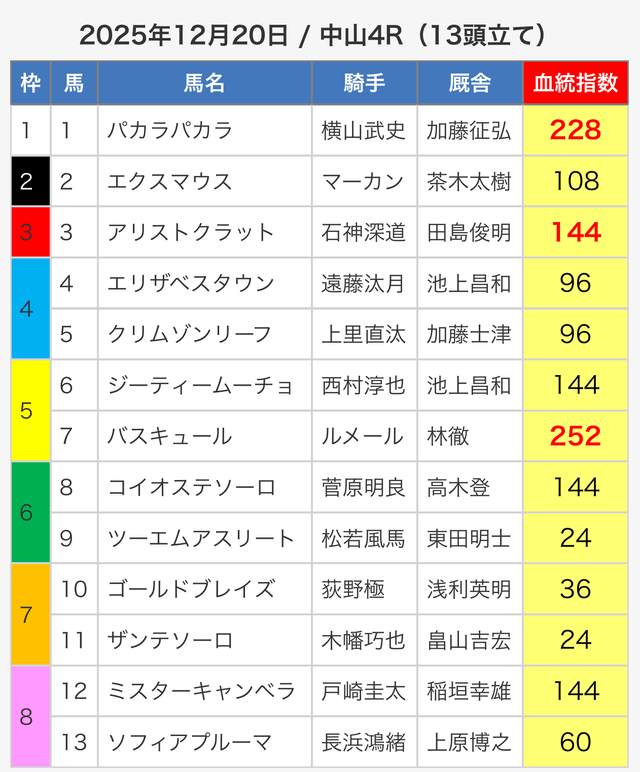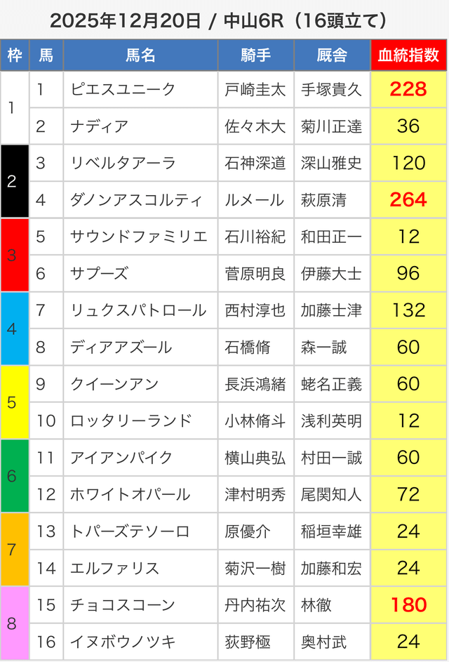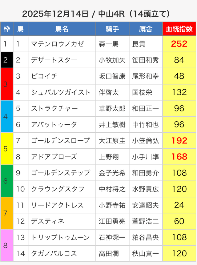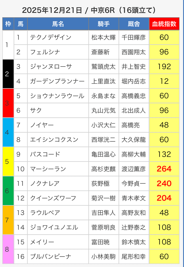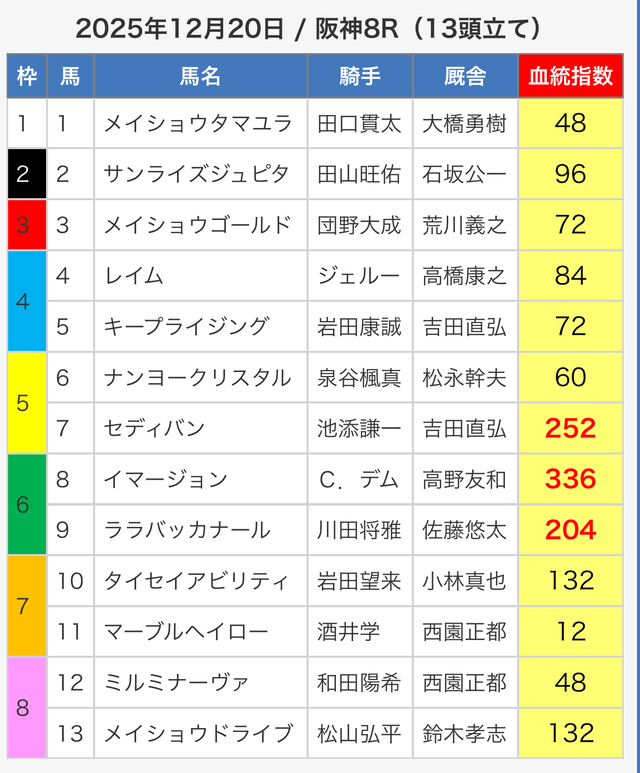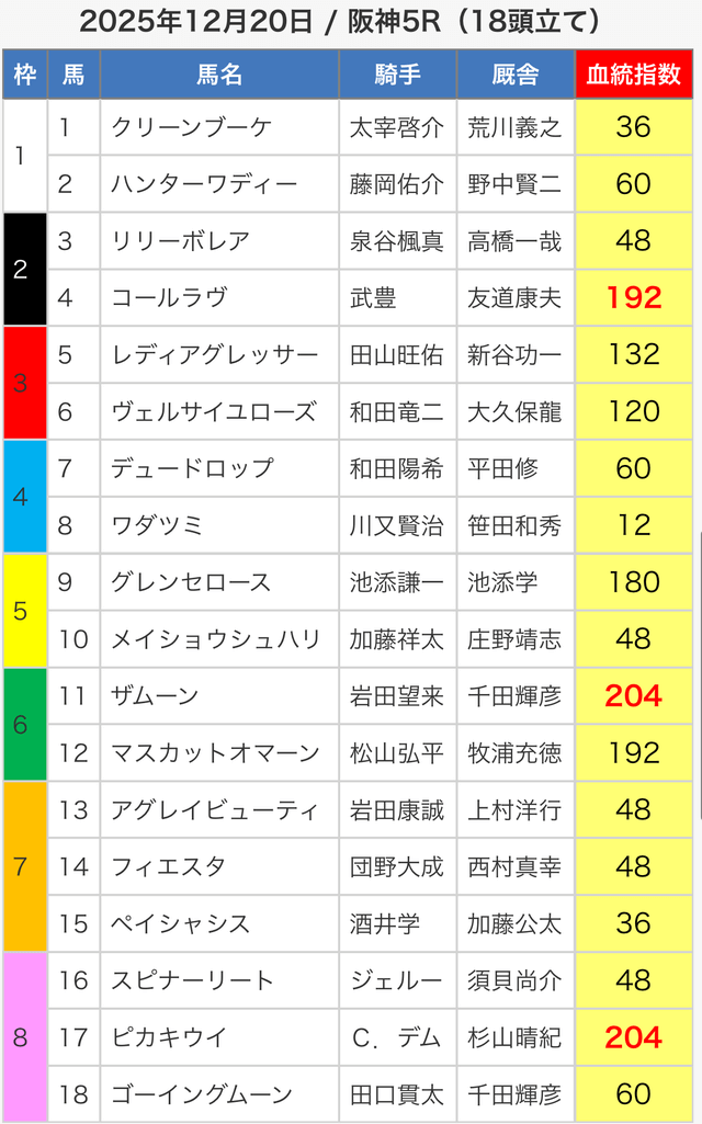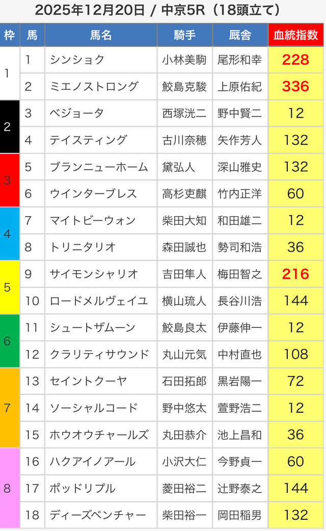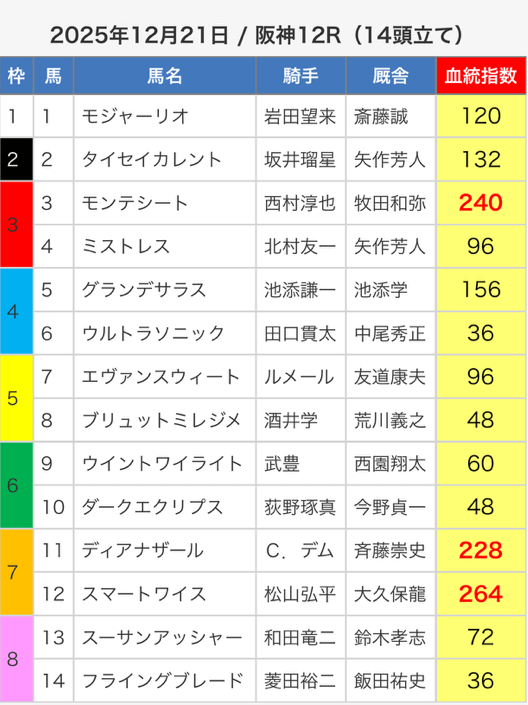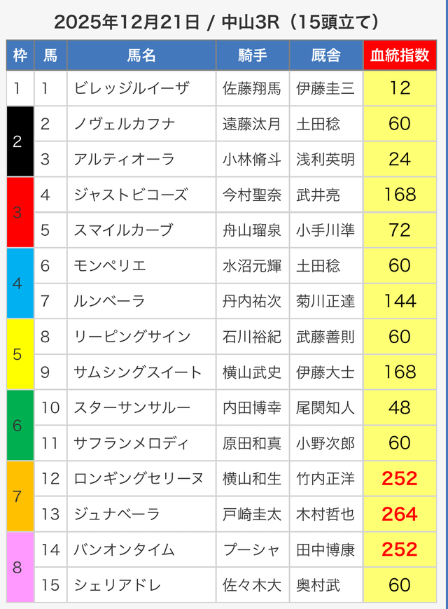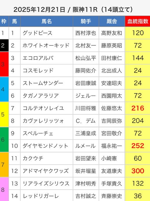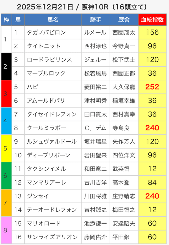 3.0匿名さん30代 男性 職業:✕ 悪い点軍資金が少ない人に取っては難しい指数提供ってのがな。指数値が高い馬が馬券内に入ってはくるけど、資金が少ない人は、点数を削るために好走馬を見極める能力が必要。 - 2025.05.3