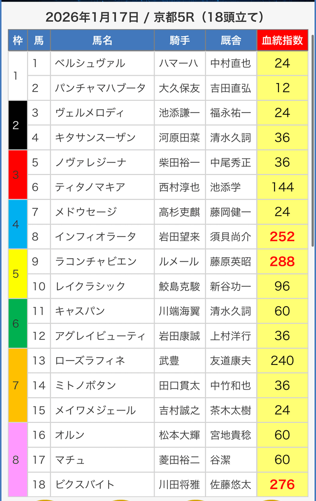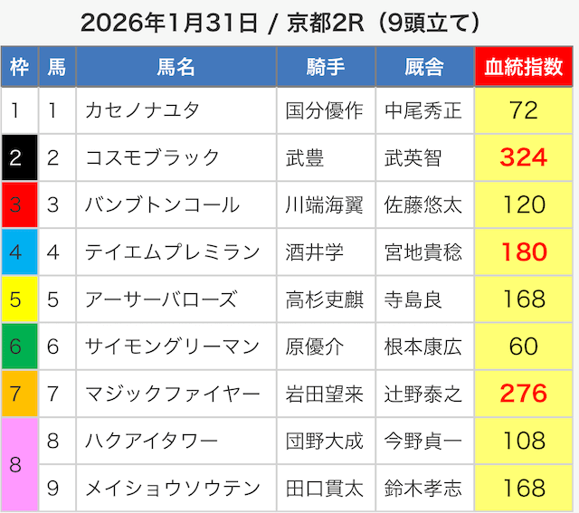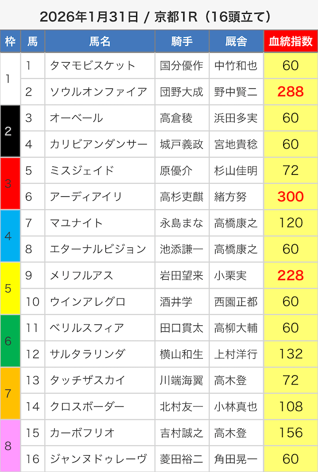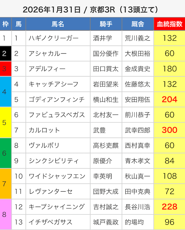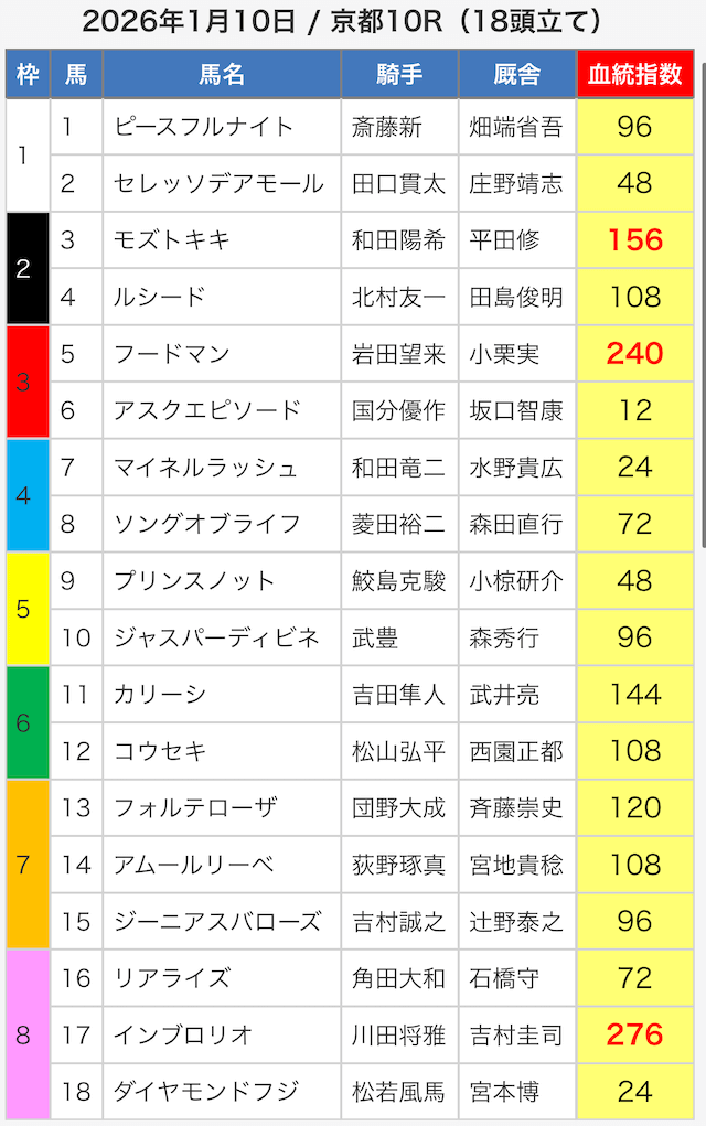 - 01月25日京都10R3連単1,291,950円