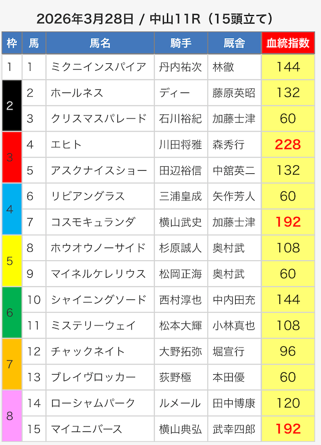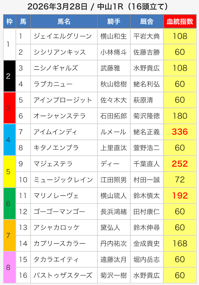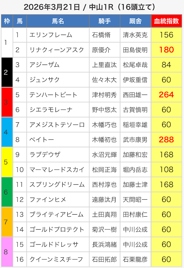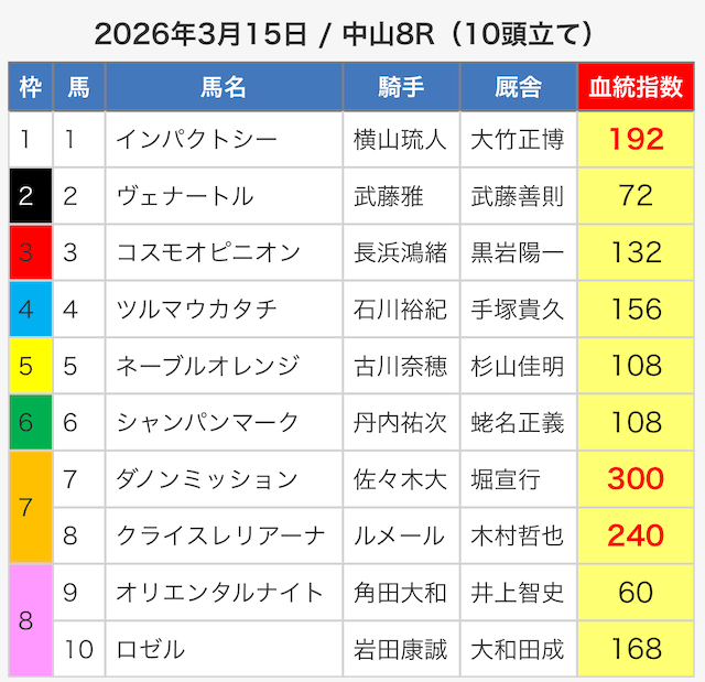 本命に選んでいる2番人気は、過去の成績や騎手などの細かなデータを見た時にそこまで、問題に思うところはない。