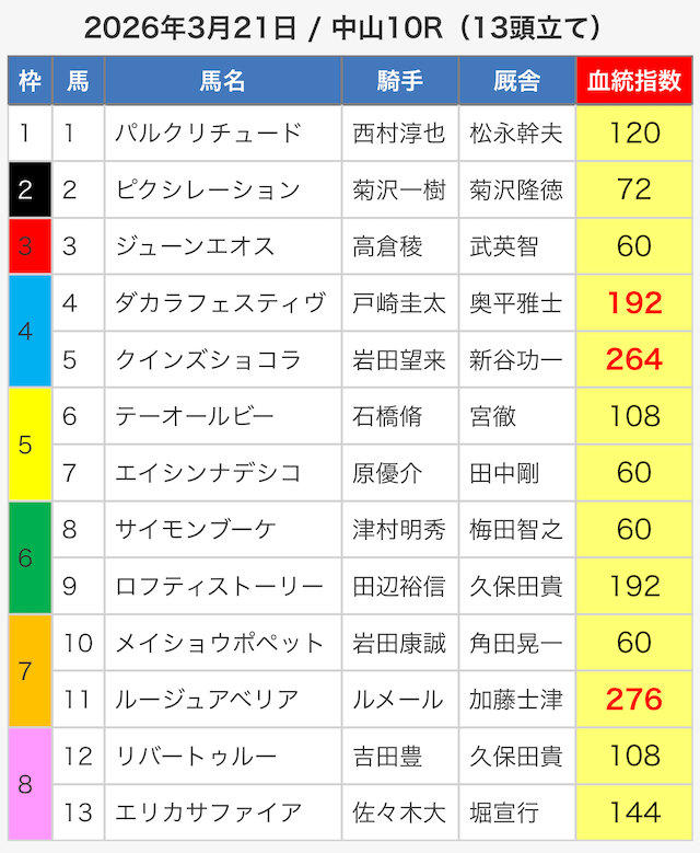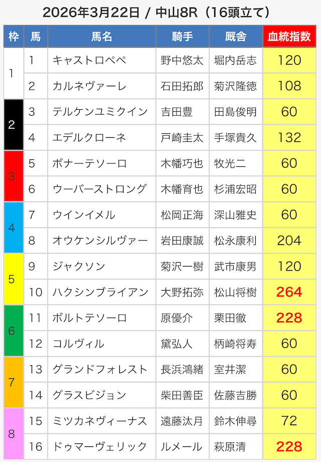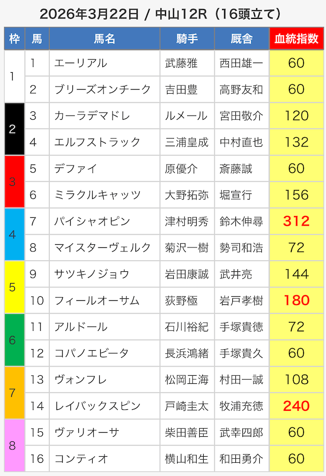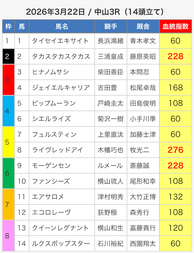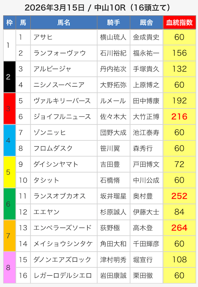 どちらも掲示板内にすら入ったことがない実力で、実績で判断するなら間違いなく、今回選んでいない好走経験のある1,3番人気を入れたいところ。