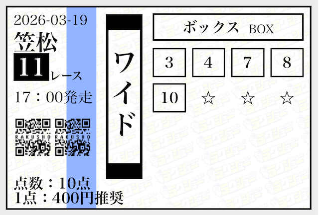 | ワイド | 4-7 | 6.9 | 11 | 不的中 |
