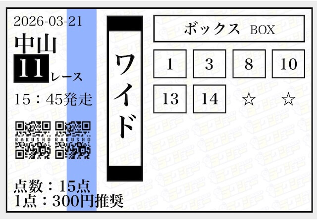 | ワイド | 3-6 | 10.6 | 14 | 不的中 |