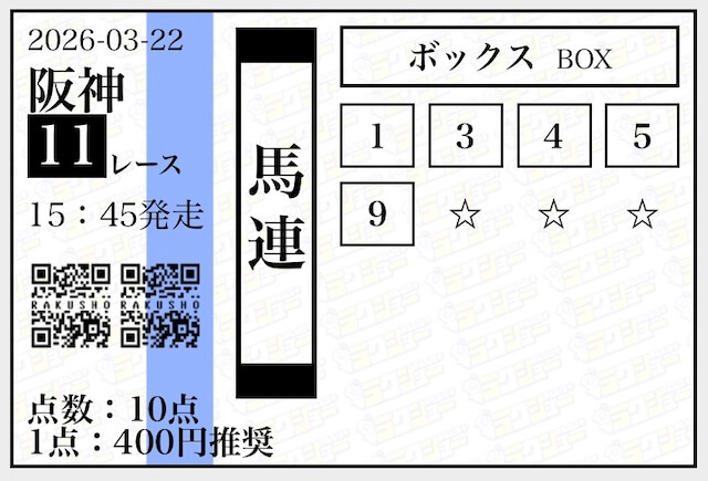 - 03月15日阪神11R3連単1,240,500円