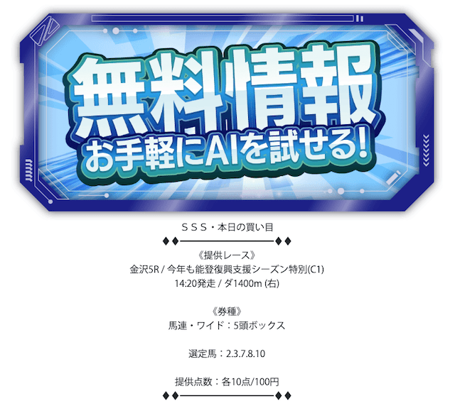 ぜひこの機会にこの効率よく稼げる予想を使ってみてくれ!