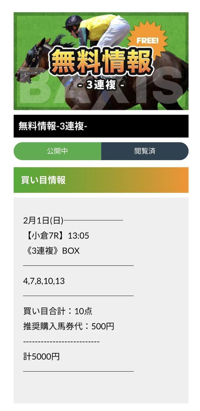 継続的に無料予想を利用していき、その安定感を検証していく。