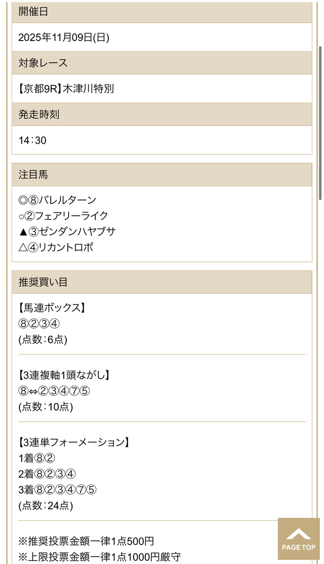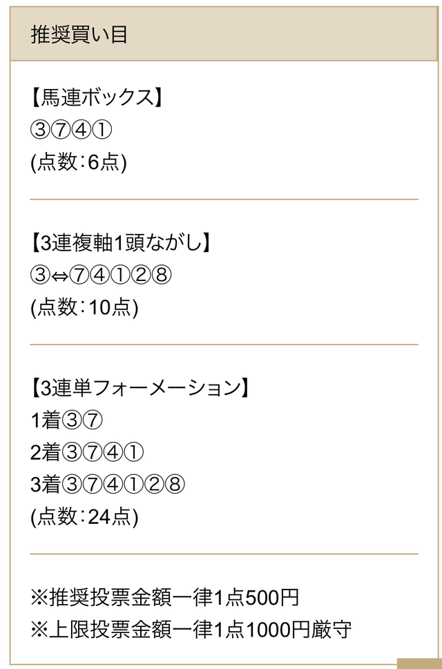 ここまでで最小5点の買い目もあったので、最安1点100円で計算すれば1レース500円でも参加可能だ。
