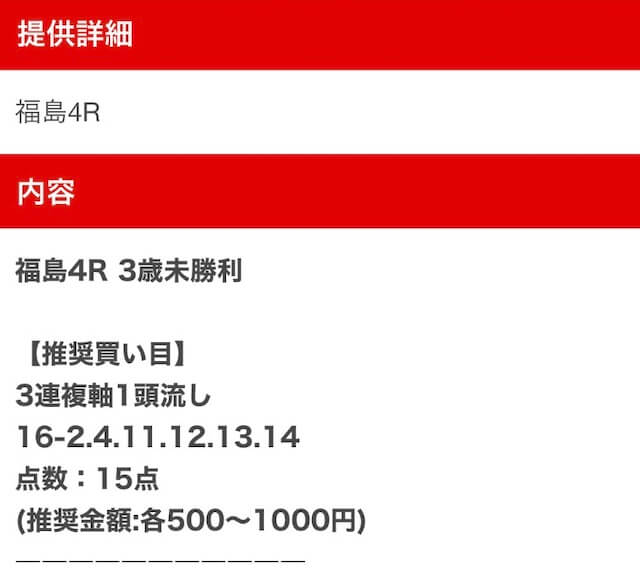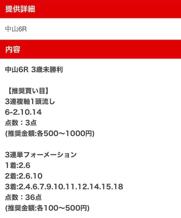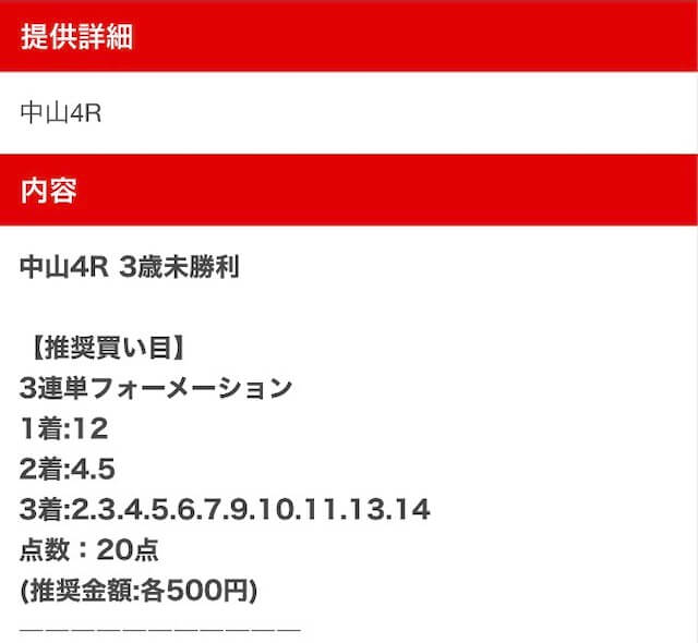 2.0匿名さん20代 男性 職業:✕ 悪い点重賞レースもくれ基本は平場のレースしか提供していない。重賞に参加したくても、予想の買い目が提供してなくて買えないから、重賞のレース提供も求める。 - 2025.08.1