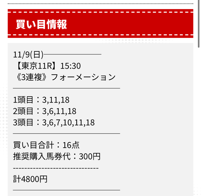 - 11月16日福島08R3連単1,076,670円