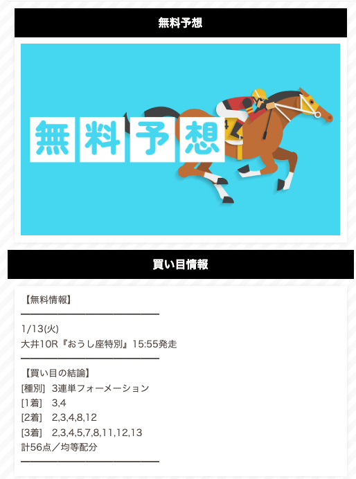 無料予想はたった3戦しただけで、