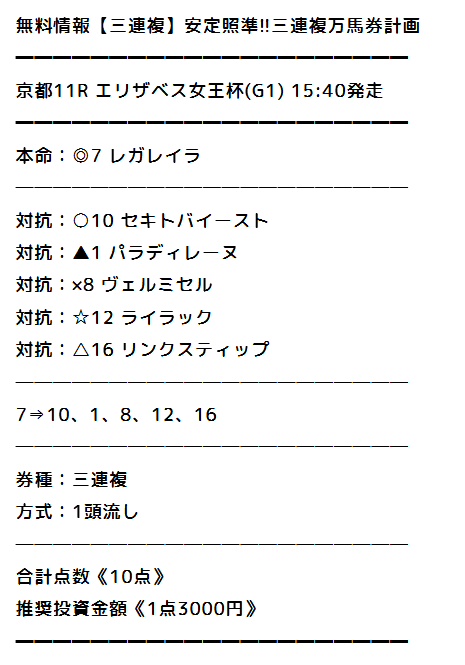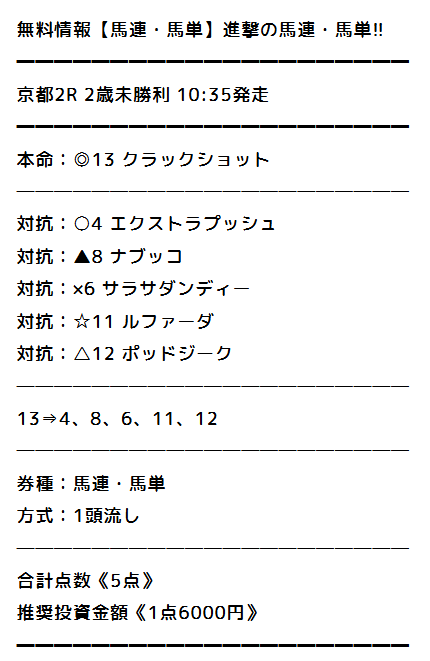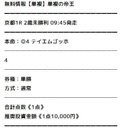 | 単複の帝王 | 1鞍:10,000円 1鞍~6鞍提供 | – | 1,000,000円 – |