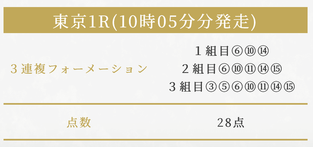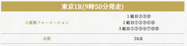 | 3連複 | 1-5-10 | 24.7 | 10 | 的中 |