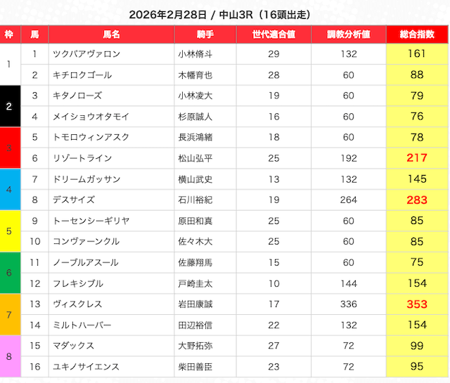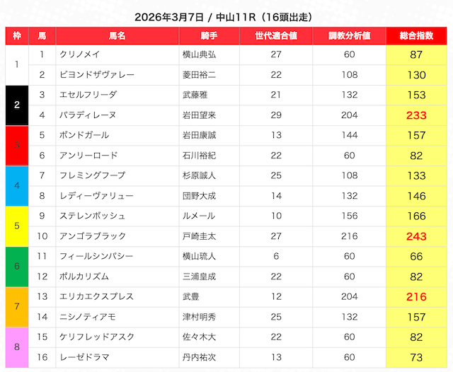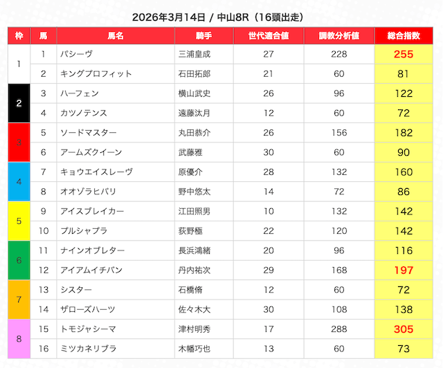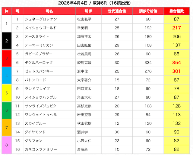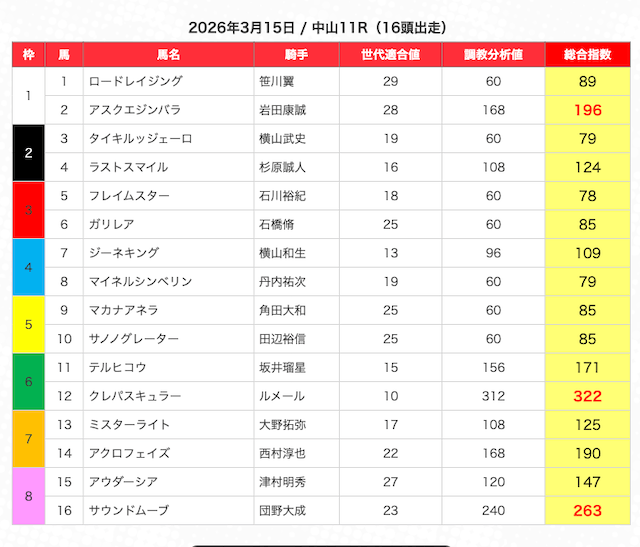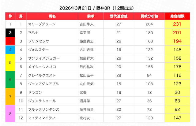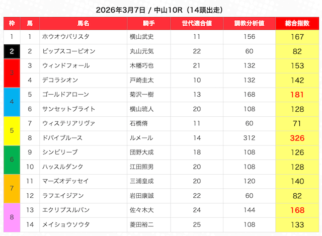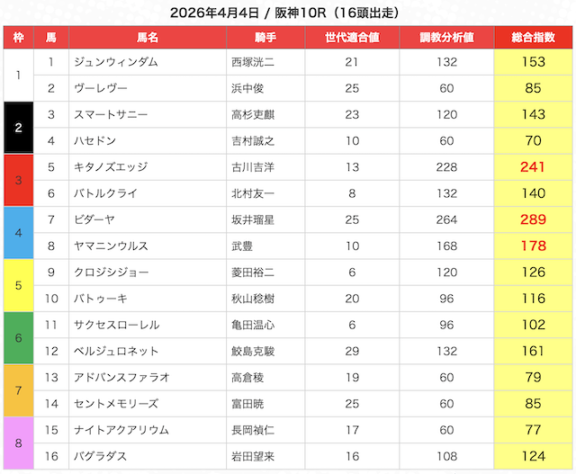 ※指数が高い馬を5頭選び、3連複BOXで勝負。