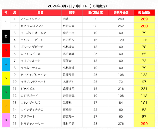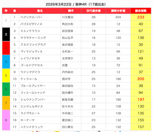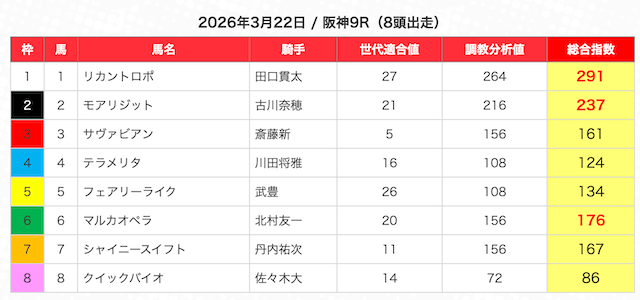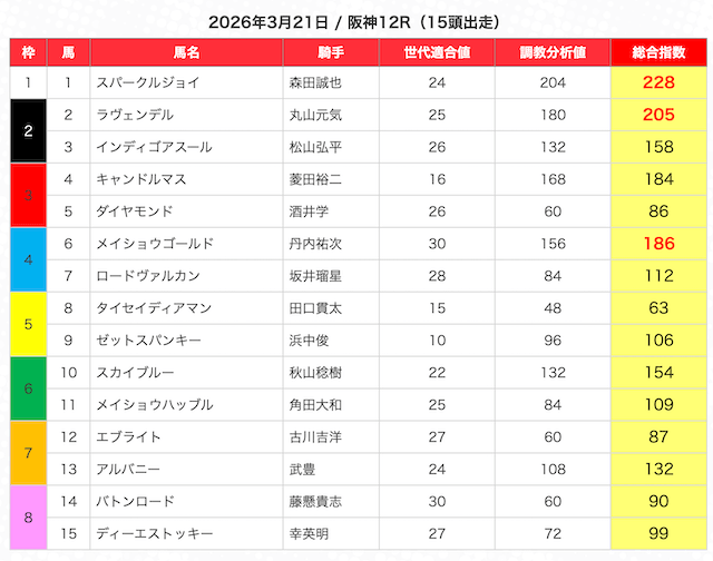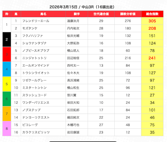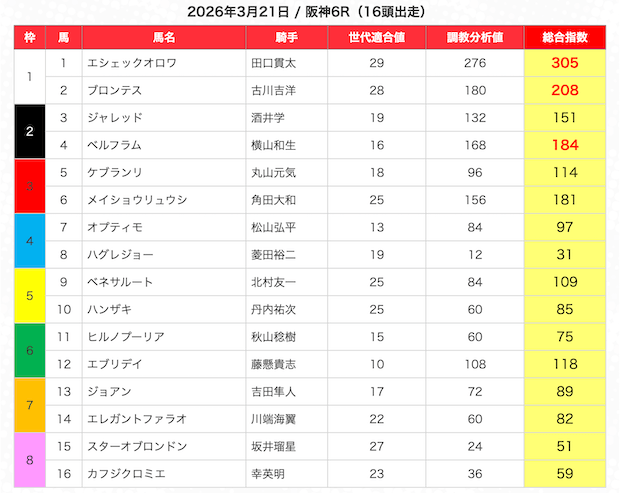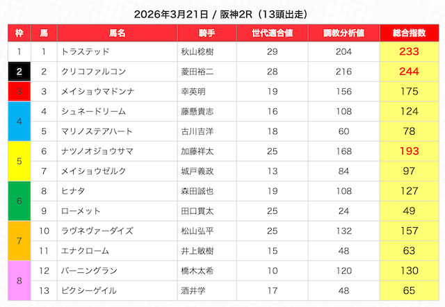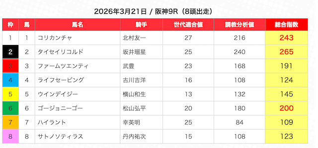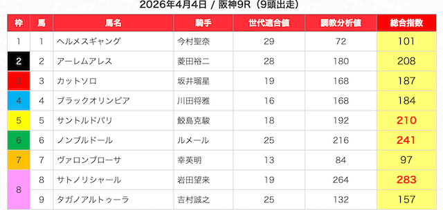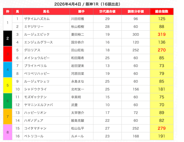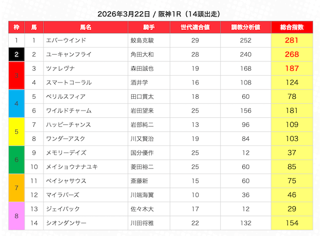 | 2 | 3 | エンヤラヴフェイス (指数第4位) |