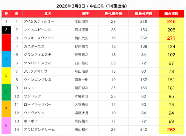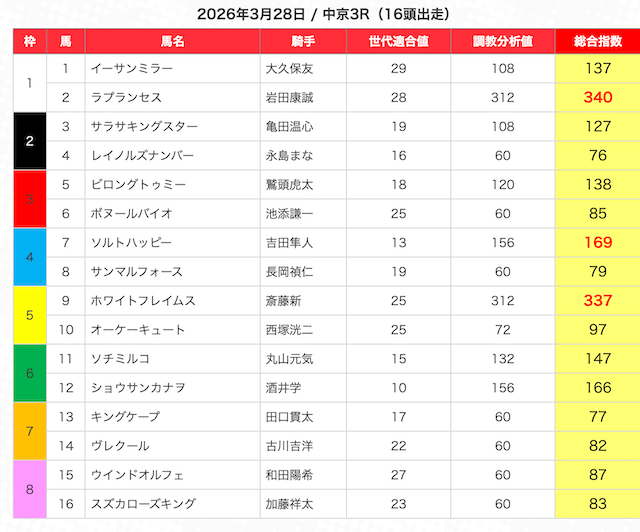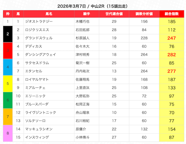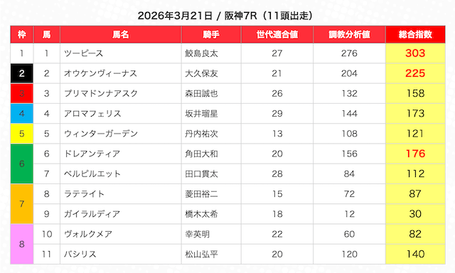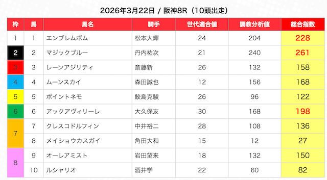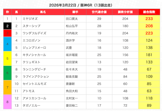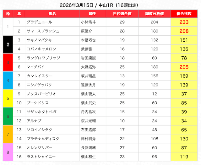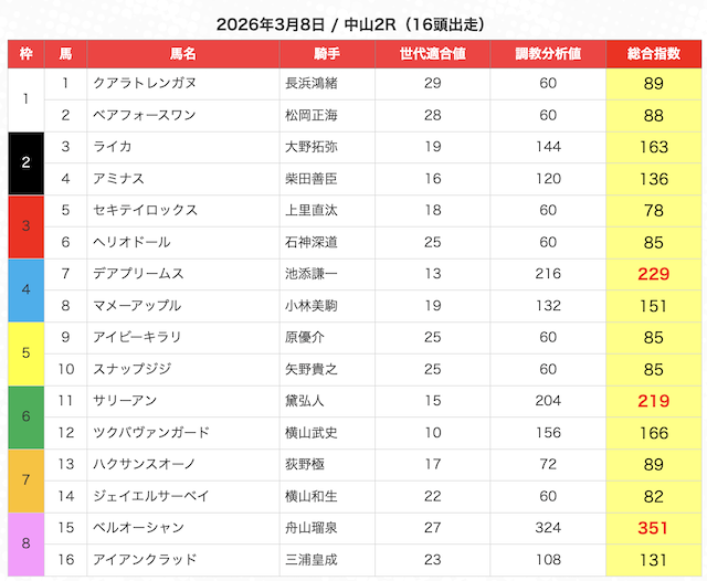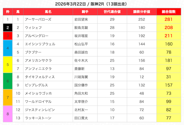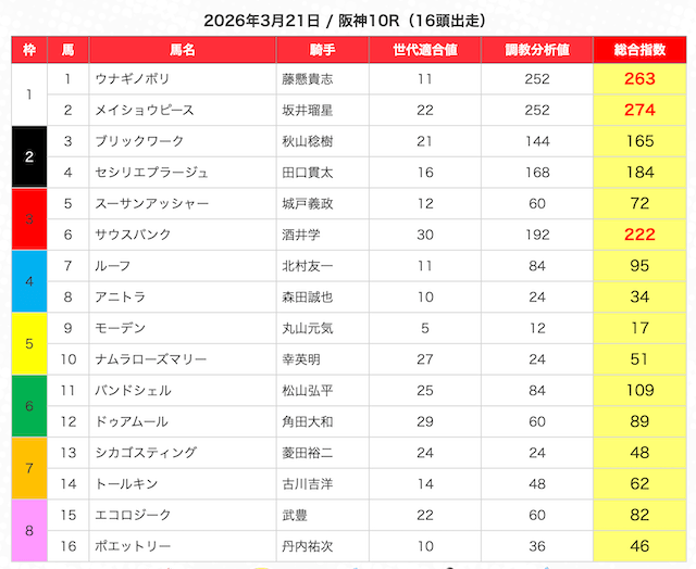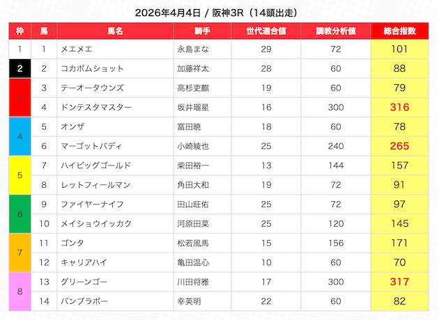 | 2 | 3 | エンヤラヴフェイス (指数第4位) |