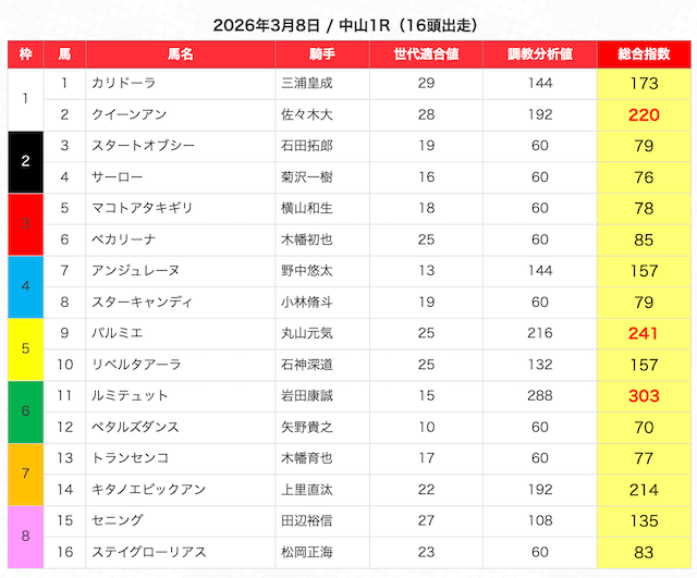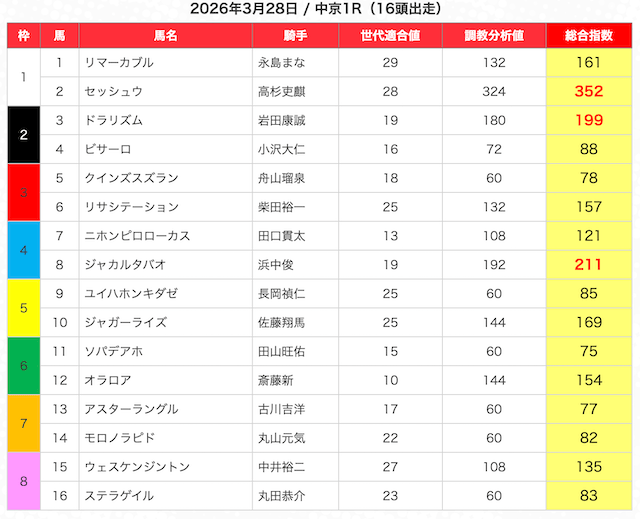 JRAの公式サイトの出走表をもとに、うまジェネが選んだ馬が的中に繋がるだけの根拠があるのか、見定めていく。