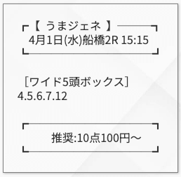 | 買い方 合計投資金額 | 3連複5頭ボックス |