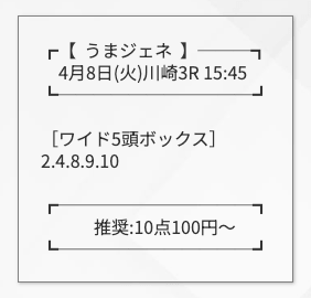 うまジェネはAIの指数による買い目なので、点数や選ぶ馬の調整は自分自身でも調整が可能だ。