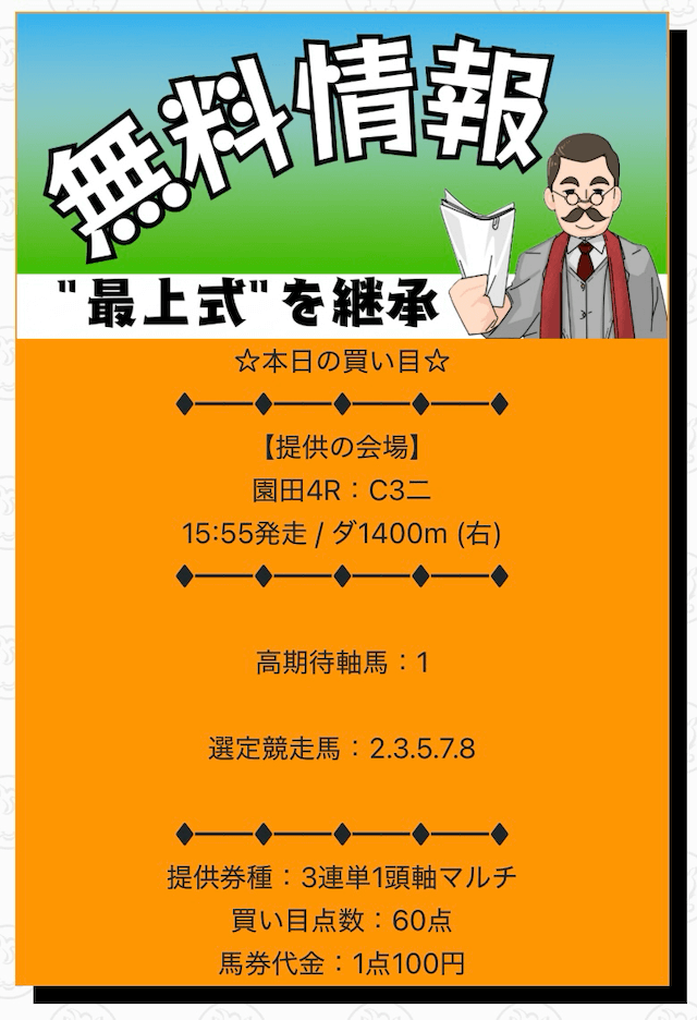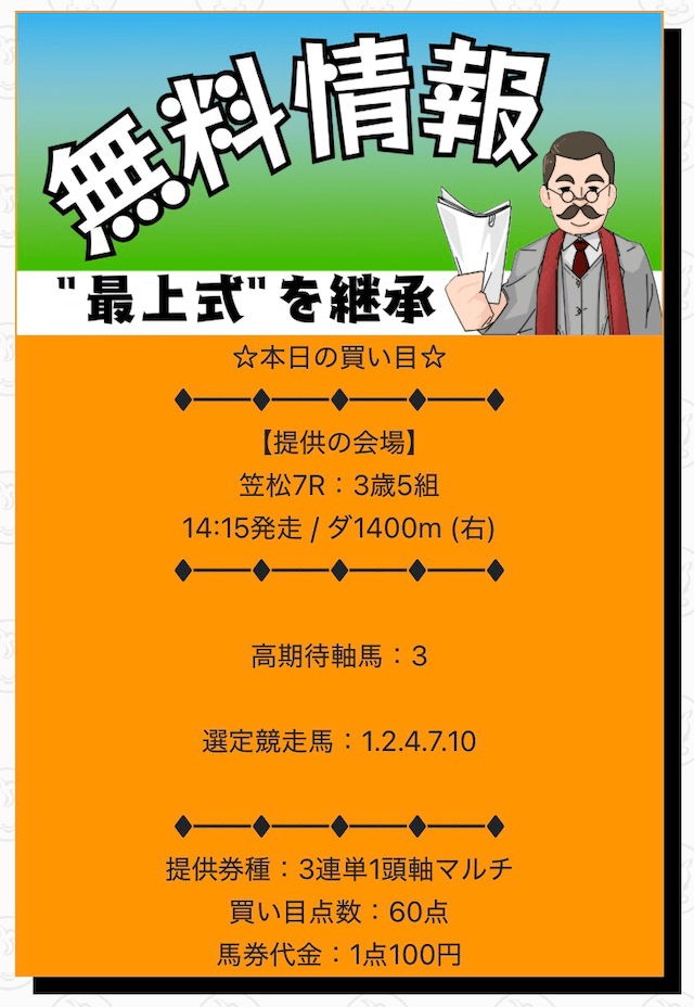 無料予想で1撃10万円超えも?最上式勝馬投票券の口コミをチェックしてみた。