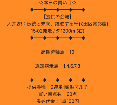 -  2025.10.29 5.0匿名さん20代 女性 職業:◎良い点特別提供は毎週見かけてるけど実績十分で安定感もありますよね~ 私が参加した時も複数的中してプラスになりました✨ 無料情報が外れた時に提供されるので無料が外れたら嬉しい(≧◇≦) 5.0匿名さん20代 女性 職業:◎良い点特別提供は毎週見かけてるけど実績十分で安定感もありますよね~ 私が参加した時も複数的中してプラスになりました✨ 無料情報が外れた時に提供されるので無料が外れたら嬉しい(≧◇≦)
