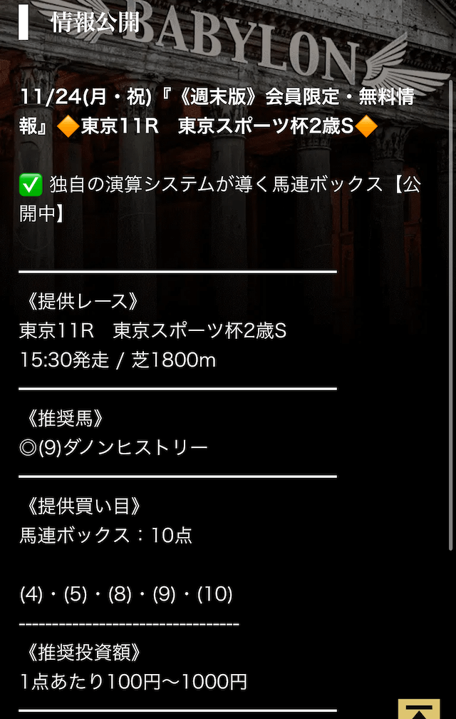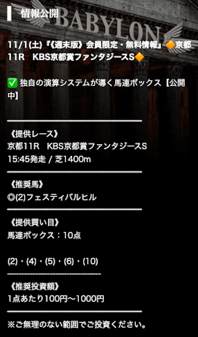 今回俺が検証するのはバビロン(BABYLON)という競馬予想サイトだ。