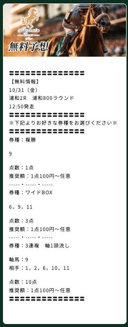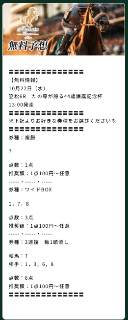 中央競馬・地方競馬関わらず無料予想では快勝、この2つは予想ノウハウが違うので両方で結果を出せている時点でかなり利用価値は高い。