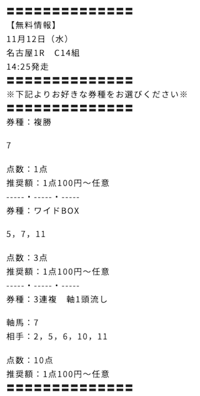 サイトの登録数は多いに越したことはないので、それぞれの買い目を参考にしてみてくれ。