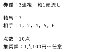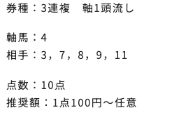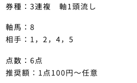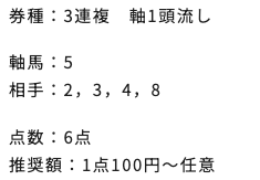 | 3連複 | 2-7-8 | 68.7 | 25 | 的中 |