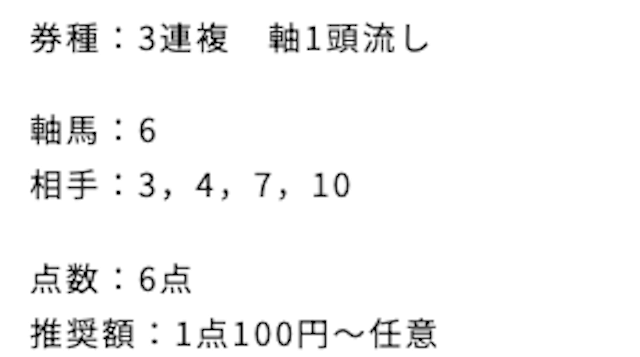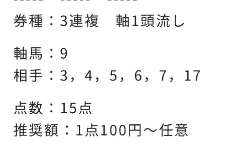 5.0マーボさん30代 男性 職業:◎良い点点数が少ないワイドだったら3点で3連複でも6点で予想してる時もあるから馬券代を調整しながら参加できるからかなりやりやすい。