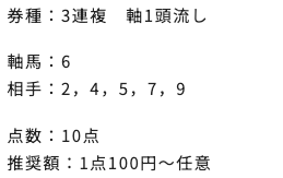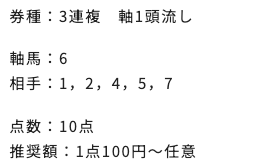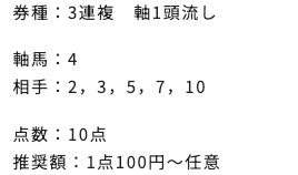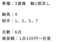| 3連単 | 4-3-9 | 62.6 | 7 | 的中 |