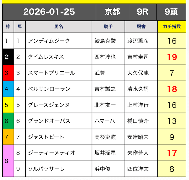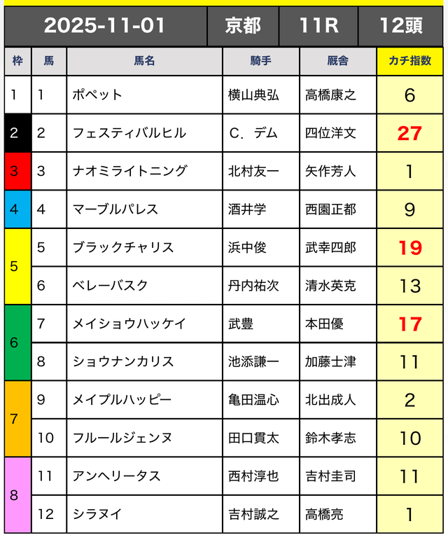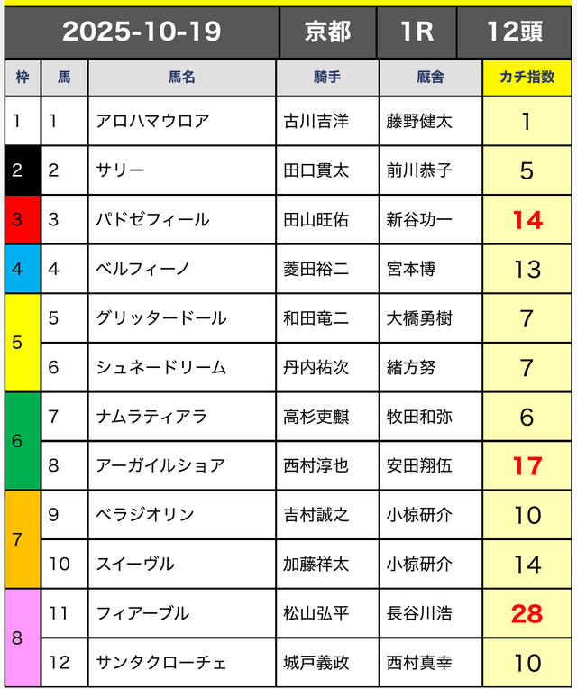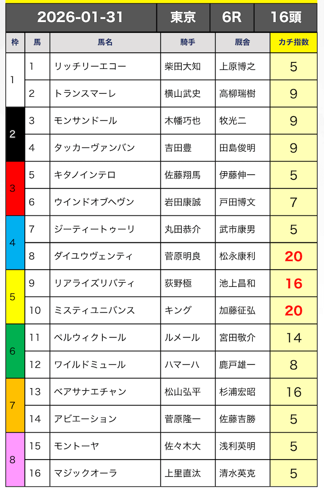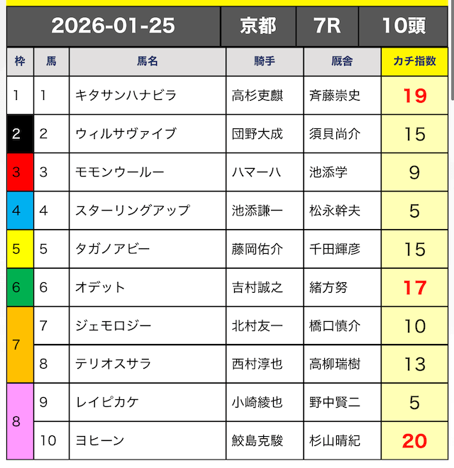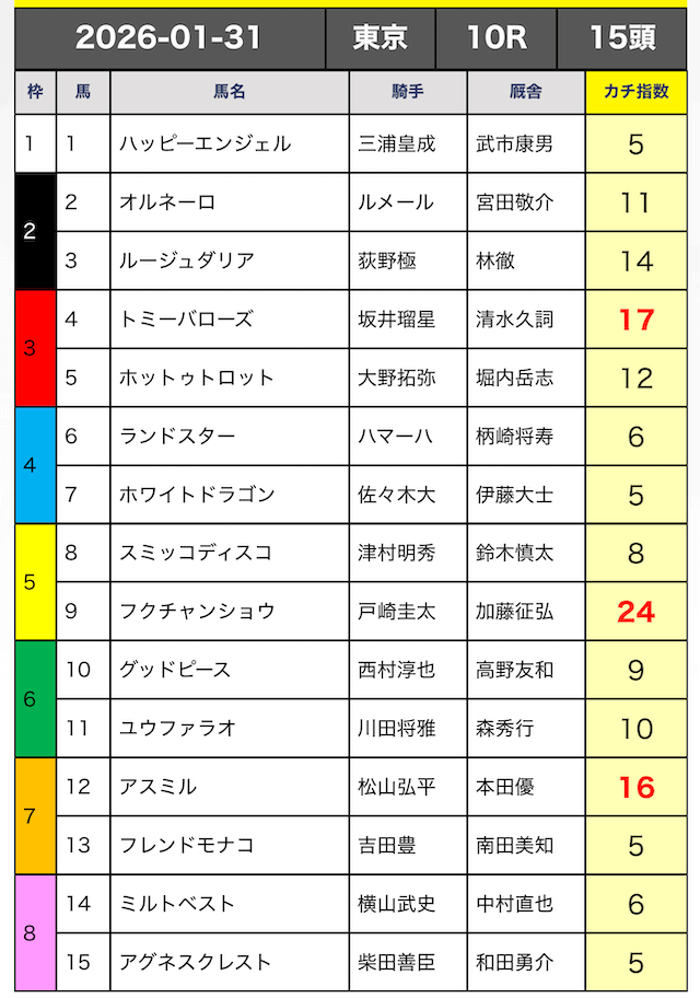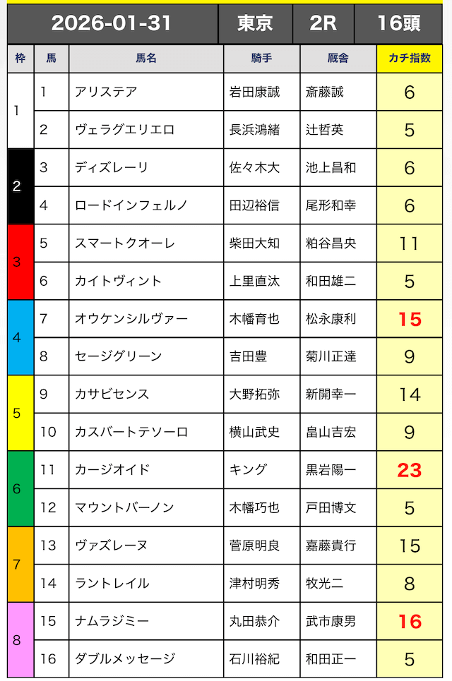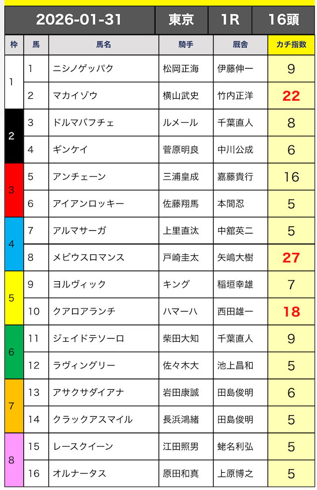 JRAの公式サイトの出走表をもとにまとめカチケンが選んだ馬はこちら。