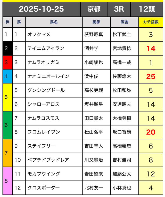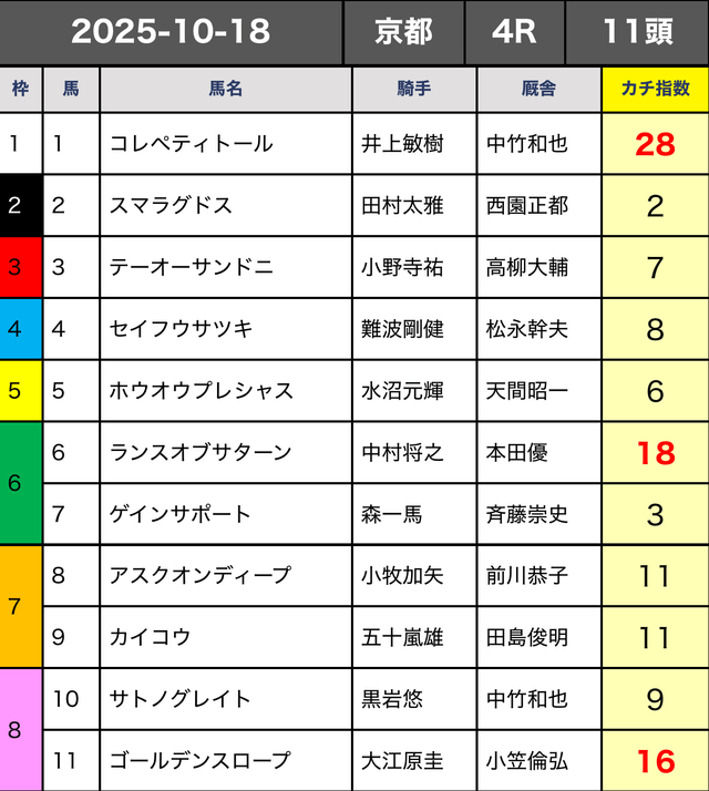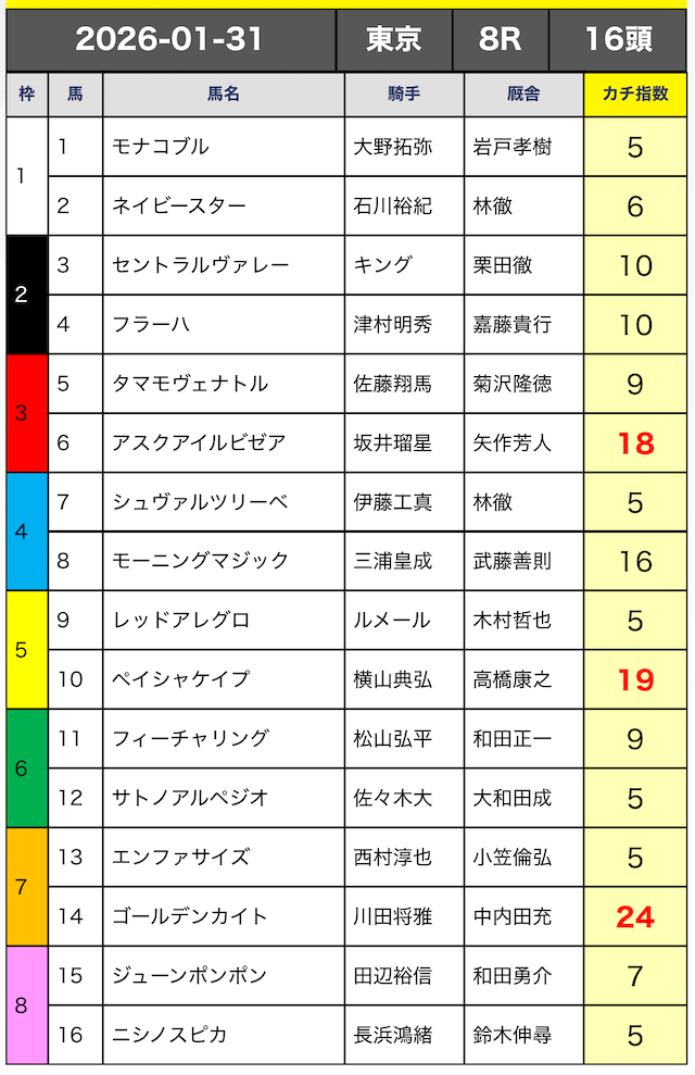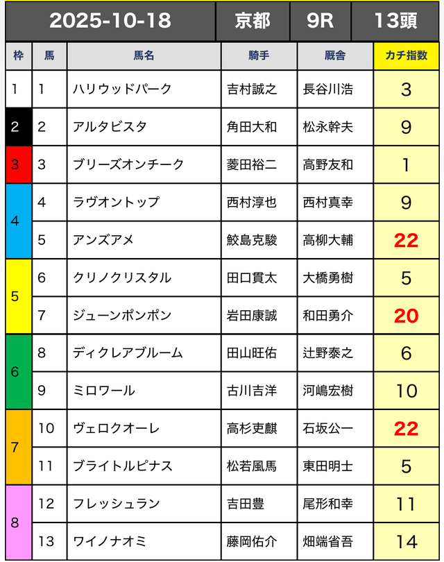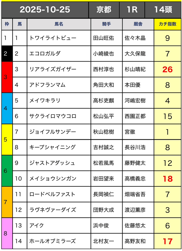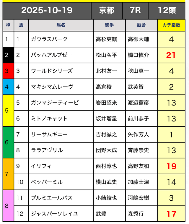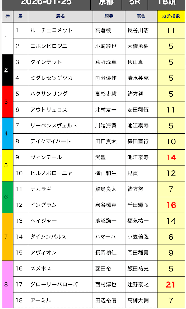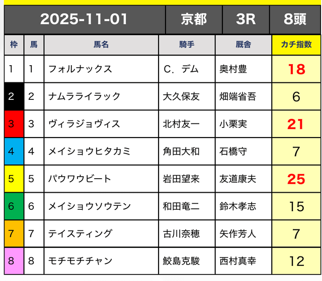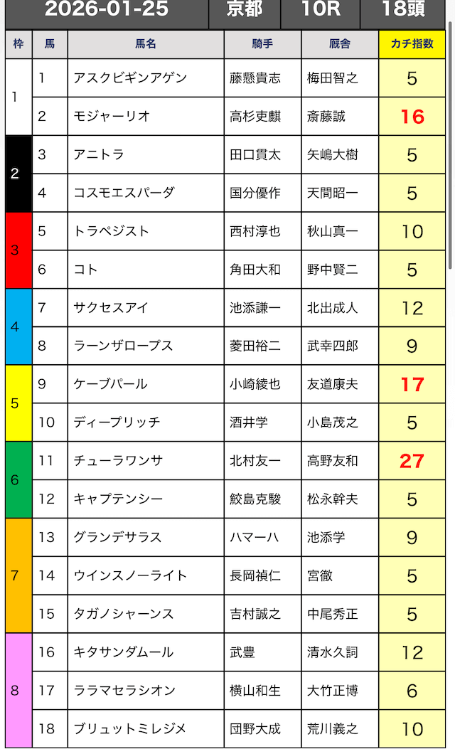JRAの公式サイトの出走表をもとにまとめカチケンが選んだ馬はこちら。