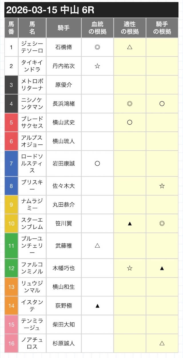 ※予想印が被ったり有力なものから順に6頭選びボックス勝負