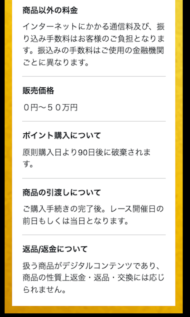 | ⭕ | 的中実績に捏造や おかしい点はないか。 | サイトに掲載の的中実績に書いてあるレースの馬券売上と 控除率から払い戻しが現実的に可能かどうか確認、 問題ないと判断できた。 |