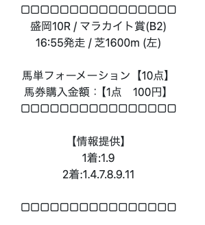 4.0名無しさん30代 男性 職業:◎良い点回収率が良い回収率が他より良い気がする。 根本の払い戻しが高い。 それって本命全体の払い戻しの基準が高いってことだよね? 無料でこのレベルの払い戻しを出せるレースを選べてるってことだもんね。 客寄せだけ考えてたらこんな攻めたレース選ばず当たるぞってことだけ示しとけば良いはずだからさ。 わざわざリスク取って利益出してることに交換が持てる。 - 2025.09.1