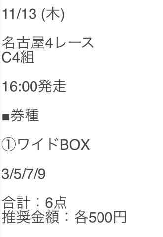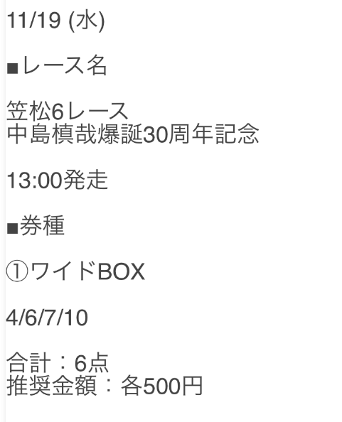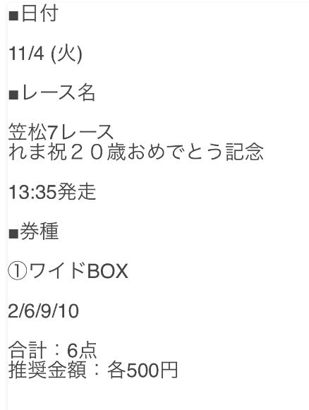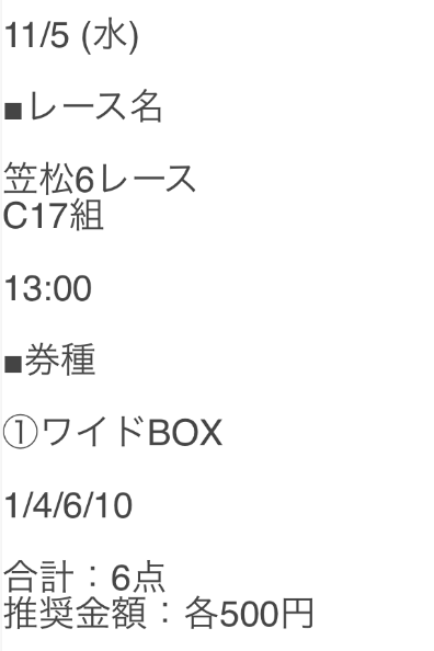 2.0名無しさん30代 男性 職業:✕ 悪い点参加したいレースの提供がなかった今回だけの可能性もあるけど、買い目の提供がなくてに参加できなかった。地方予想で軍資金集めしてたのに。