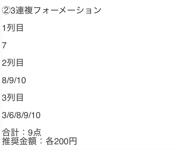 3.0匿名さん30代 男性 職業:✕ 悪い点点数をもうちょっと削って欲しい特に3連複。10点とかなら許容範囲だけど20点超えたとき不的中のリスクがでかすぎる。 - 2025.02.17