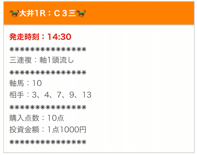 ケイバ一番星の評価は高く、特に無料予想での払い戻しの高さが評判になっていた。