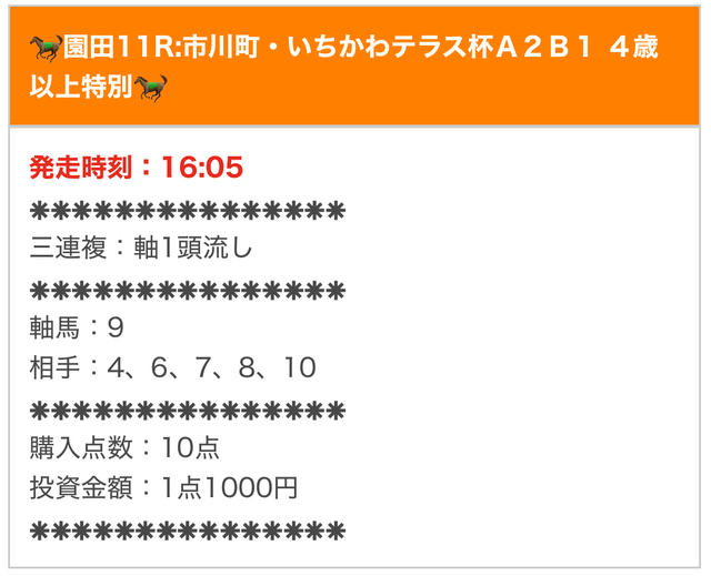 - ケイバ一番星の無料予想を