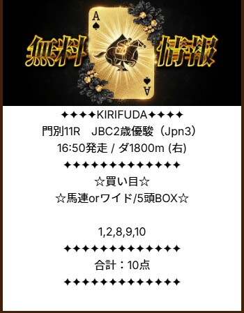 キリフダが提供している2025年11月16日盛岡08Rの有料プランの買い目。