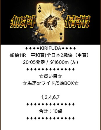 どんな買い目なのか全く検討がつかないが、とにかく今回の予想は当たってくれさえすればそれでいい。