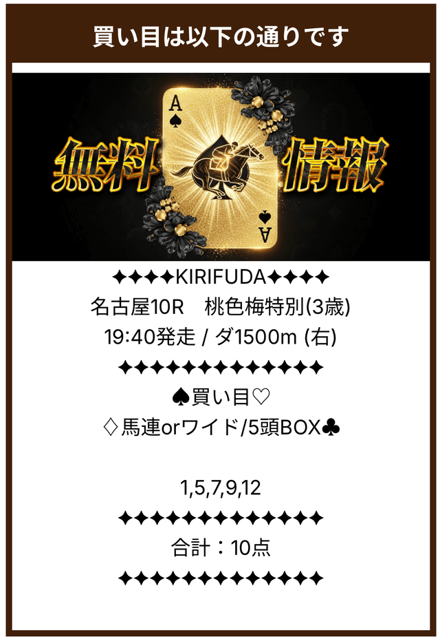 この話が本当なら、数々のレースを的中に導いてきた猛者たちが予想を提供しているので、稼げることは間違いなしだろう。