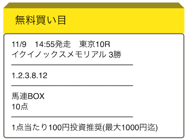 無料予想は3連複のボックスで的中率を担保しつつ、200%を超える払い戻し度々出すことにも成功しているという。