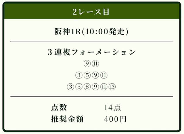 3連複 | 2-8-11 | 24.7 | 8 | 的中 |