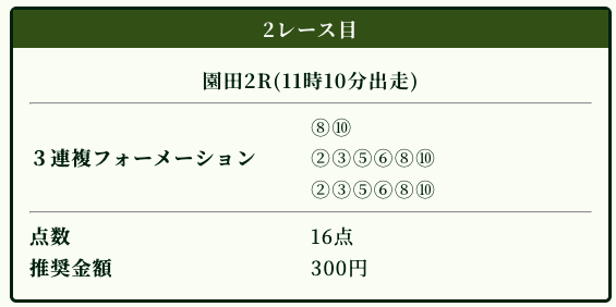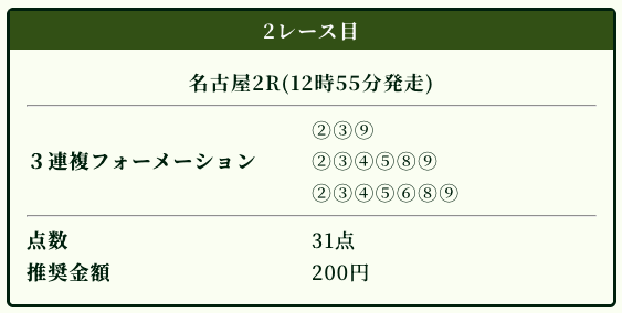 3連複 | 2-3-8 | 14.5 | 2 | 不的中 |