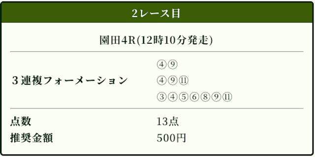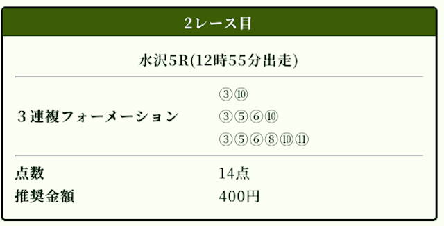 | 3連複 | 2-4-5 | 110.7 | 21 | 的中 |