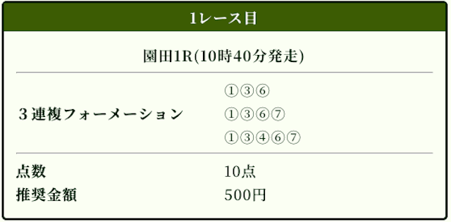 | 3連複 | 3-6-7 | 25.1 | 9 | 的中 |
