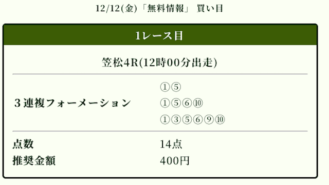 無料予想はたった3戦しただけで、