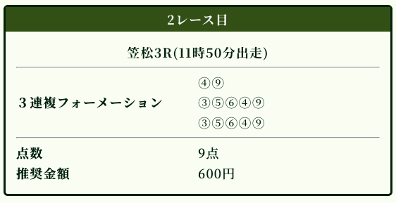 3連複 | 3-6-7 | 25.1 | 9 | 的中 |