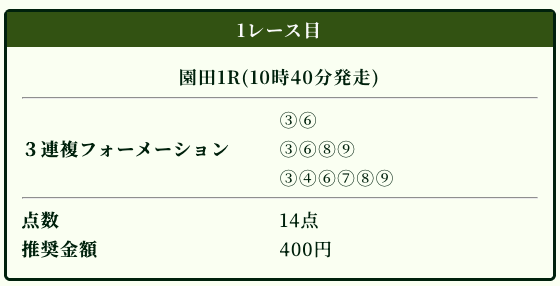 | 3連複 | 3-6-7 | 25.1 | 9 | 的中 |